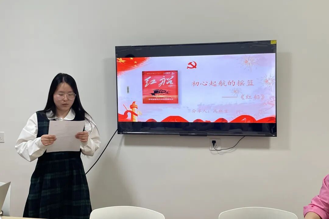 高新言同志立足“初心起航的摇篮”的视角,详细介绍了深入《红船》一书。她从中共一大的历史细节切入,深入解读“红船精神”的深刻内涵,她讲到:“红船是中国革命的起点,我们要牢记‘开天辟地、敢为人先’的首创精神,在学习和生活中勇挑重担、敢闯敢试。”