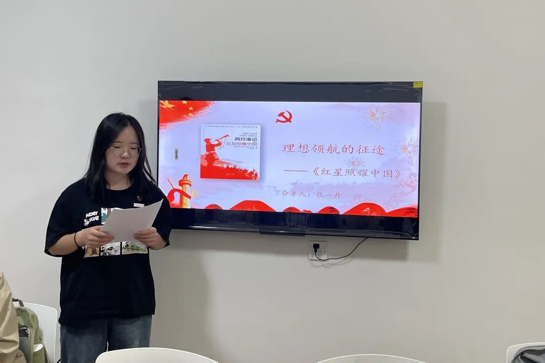 张一丹同志分享了《红星照耀中国》,并以“理想领航的征途”为主题,生动叙述了斯诺笔下共产党人的真实故事,展现了书中革命年代青年对真理的执着追求,她呼吁:“我们应像革命先辈那样,把个人理想融入国家发展,让青春在强国征程中绽放光芒。”