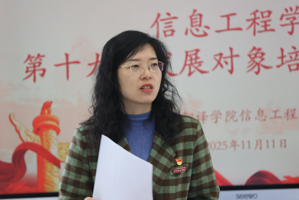 会中,沈平利同志带领全体参会人员认真学习了《关于举办西译党委党校第十九期发展对象短期集中培训班的通知》,对培训的时间安排、地点设置以及涵盖内容进行了详细阐释。她讲到,本次培训将于11月12日至11月14日在图书馆报告厅举行,培训采取学员自学、集中授课、主题研讨与结业考试相结合的方式开展,要求各发展对象在培训期间认真学习,严格遵守纪律,坚决杜绝无故缺勤、迟到早退等现象。她强调,此次培训最终将以闭卷考试形式进行考核,希望大家在持续学习中不断提高自身理论水平和党性修养,始终以党员标准严格要求自己。