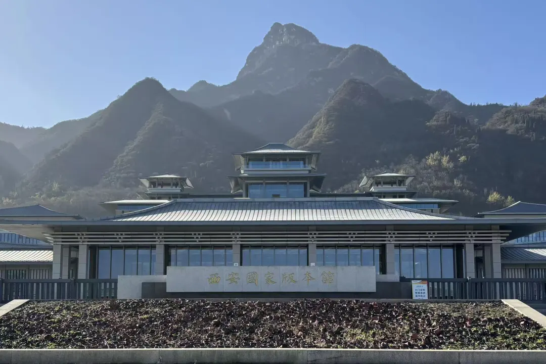 西安国家版本馆坐落于秦岭圭峰北麓,独特建筑风格尽显文化韵味。台地布局依山而建,文济阁高台重檐古朴庄重,文济泉引活水潺潺流淌。传统建筑智慧与现代绿色技术在此交融,既显磅礴气势,更传递出 “藏之名山、传之后世” 的深层文化内涵,让师生党员初到便沉浸在浓厚的文化氛围中。