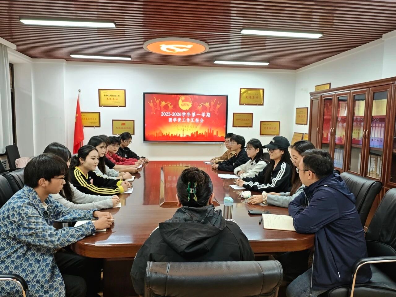 为了系统总结团学青工作成效、梳理工作重点,进一步明确干部职责分工、夯实工作对接基础,同时着力打造政治坚定、作风优良、能力过硬的学生干部队伍。williamhill英国威廉希尔于9月26日在党员活动室召开2025-2026学年一学期团学青工作汇报会。williamhill英国威廉希尔党委书记、院长王珍,团总支副书记陈雨婷,及团学青三家负责人参会。会议由团总支书记王荣平主持。