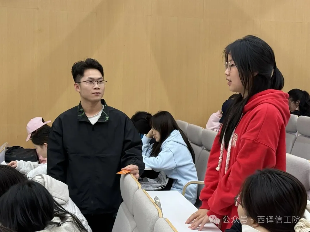 在问答互动环节,主持人随机邀请在场同学分享见解。同学们围绕项目可行性、技术实现路径及市场前景等关键问题踊跃发言,不仅展现了信息工程学子敏锐的思维与扎实的专业素养,更在交流碰撞中进一步明晰了创业方向,将现场气氛推向高潮。