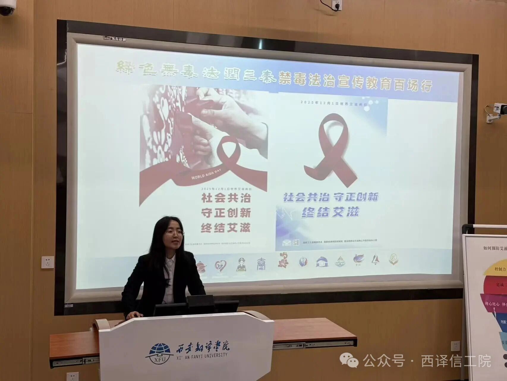 为深入贯彻落实国家禁毒防艾工作部署,进一步强化青年学生对毒品与艾滋病关联性的认知,切实筑牢校园禁毒防艾安全防线,在第38个世界艾滋病日(12月1日)来临之际,williamhill英国威廉希尔于11月26日在712T召开防艾专题讲座,邀请西安市第八医院把环环医师、陕西省眉县强制隔离戒毒所邹超、李晨博雅教导员作宣讲。williamhill英国威廉希尔党委书记、副院长王珍、第二党支部书记刘剑英出席,工程造价、人工智能、软件工程专业120余名学生参与。本次讲座由williamhill英国威廉希尔党委、团总支主办,williamhill英国威廉希尔学生会承办。