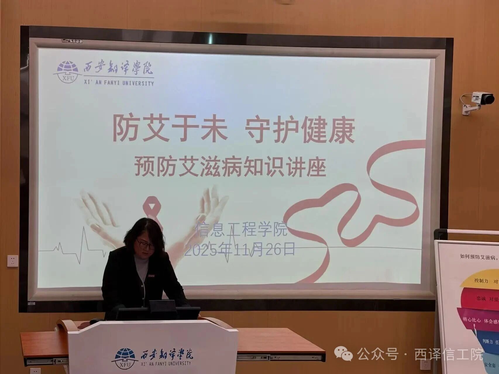 随后,把环环以“艾滋病流行病学与暴露后预防”为主题,结合2025年世界艾滋病日“社会共治,守正创新,终结艾滋”的主题,用详实数据介绍了全球及我国艾滋病流行现状,解读“四个95%”防治目标,强调防艾需全社会共同参与。她重点讲解艾滋病的致病原理、临床分期与性接触、血液、母婴三大传播途径,提醒同学们警惕不正规医美、共用剃须刀等潜在隐患,同时详细科普暴露后72小时“黄金阻断期”的重要性、西安市第八医院等定点求助渠道及阻断药服用规范,呼吁同学们关爱自身健康,做好自我防护。