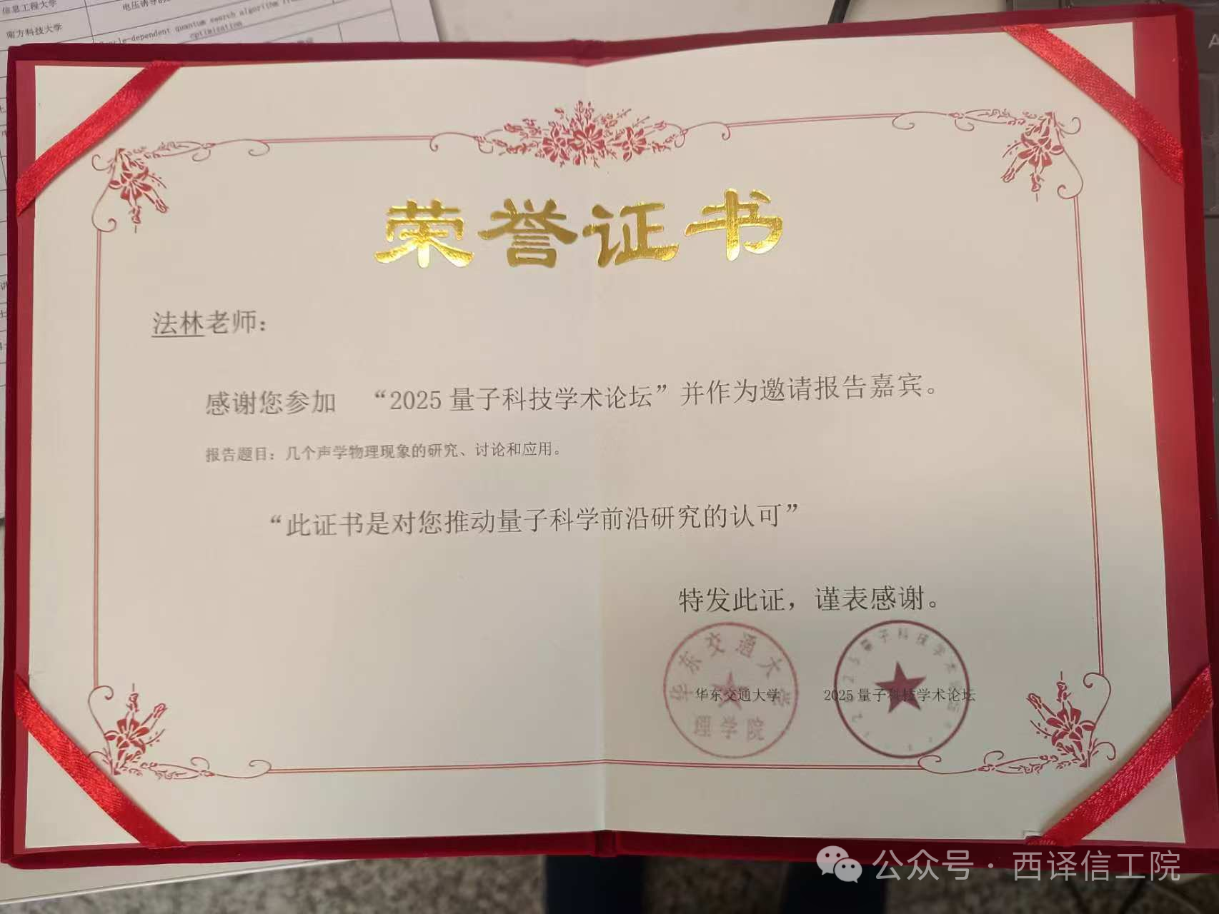 2025年12月12日至14日,2025量子科学技术论坛在江西南昌隆重举行。在这场汇聚了清华大学、北京大学、中国科学技术大学等国内顶尖高校及科研机构200余名专家的高水平学术盛会上,williamhill英国威廉希尔法林教授作为特邀嘉宾出席,并作专题学术报告,彰显了我们在前沿交叉学科领域的学术活力与影响力。