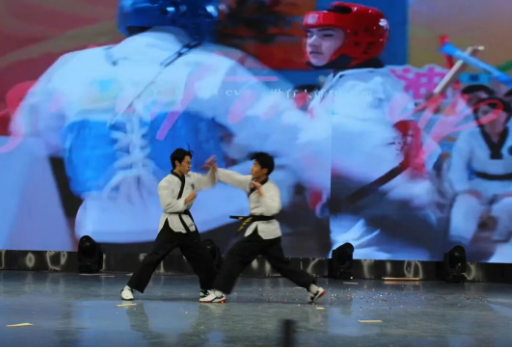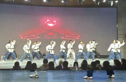 刚韧碰撞,力与美交织。同学们带来的跆拳道表演,以利落的招式、坚毅的眼神,展现出汗水浇灌的坚持、勇气凝结的力量,赢得阵阵喝彩。
